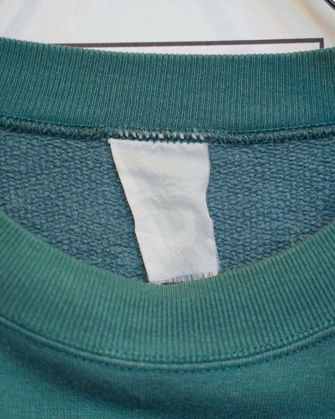 1992年にフランスで開園したユーロディズニー(現ディズニーランド・パリ)のスーベニアスウェット。ミッキーが地球儀に乗ったアートワークに、飛行機のタグが添えられた旅情感のあるグラフィックです。独特なティールグリーンのボディカラーも希少。タグはかすれて読み取り不可ですが、90年代頃のヨーロッパ製と思われます。